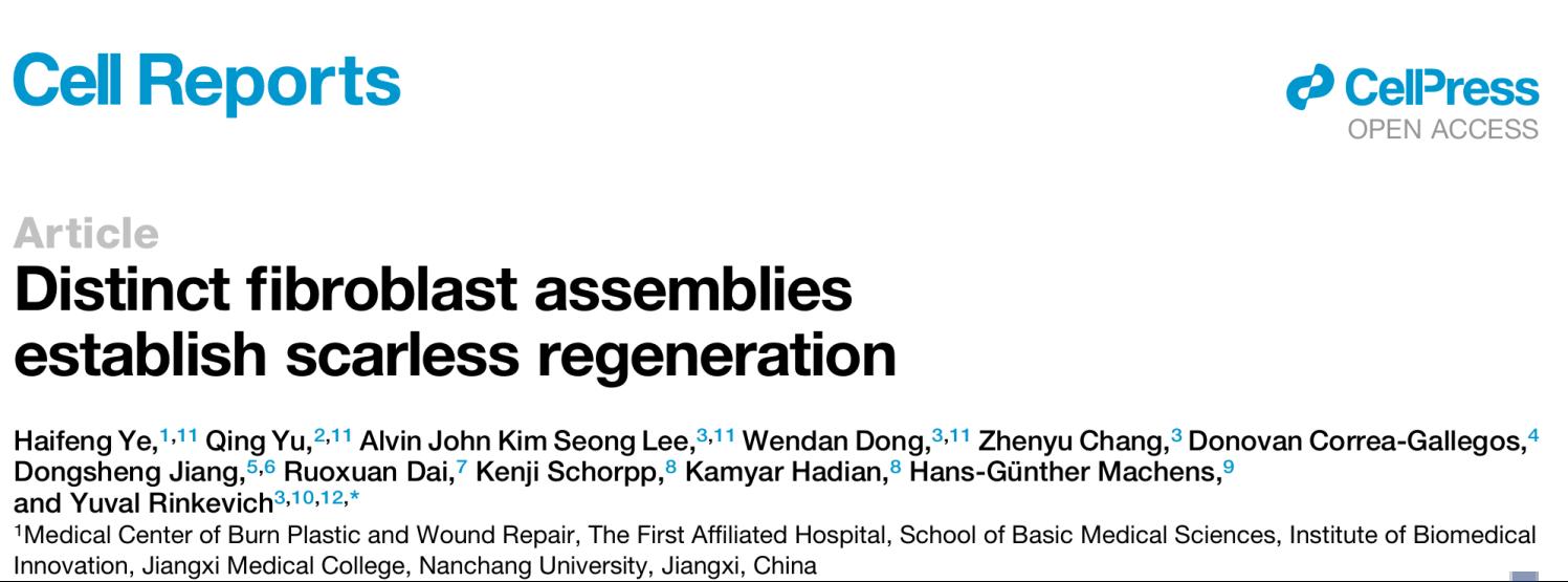 叶海峰研究员团队在Cell Reports发文揭示成纤维细胞调控无瘢痕再生机制